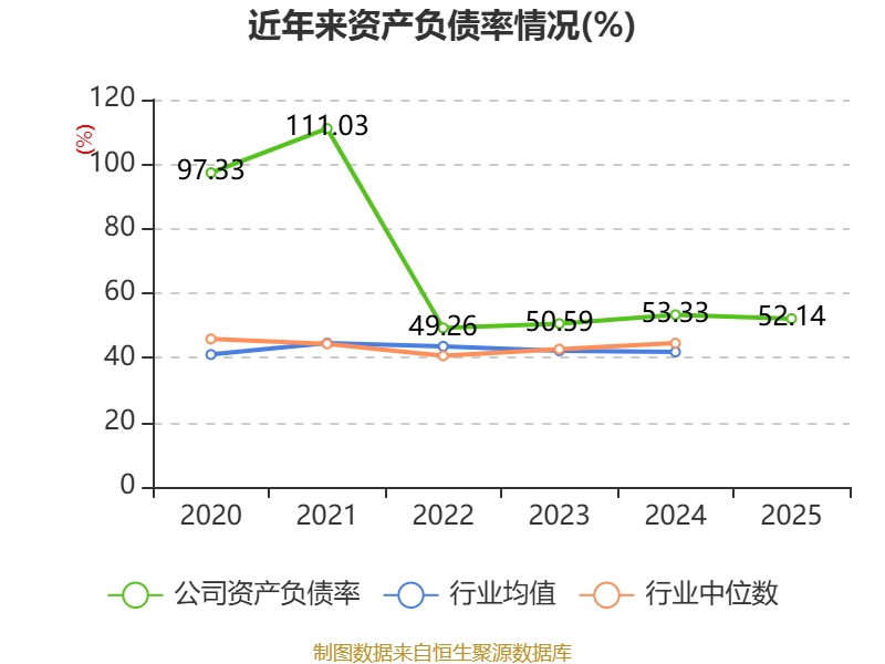 负债重大变化方面,截至2025年末,公司预计负债较上年末减少99.97%,占公司总资产比重下降19.03个百分点;租赁负债较上年末增加4006.96%,占公司总资产比重上升16.59个百分点;一年内到期的非流动负债较上年末增加4371.41%,占公司总资产比重上升6.9个百分点;应付票据及应付账款较上年末减少65.13%,占公司总资产比重下降5.32个百分点。