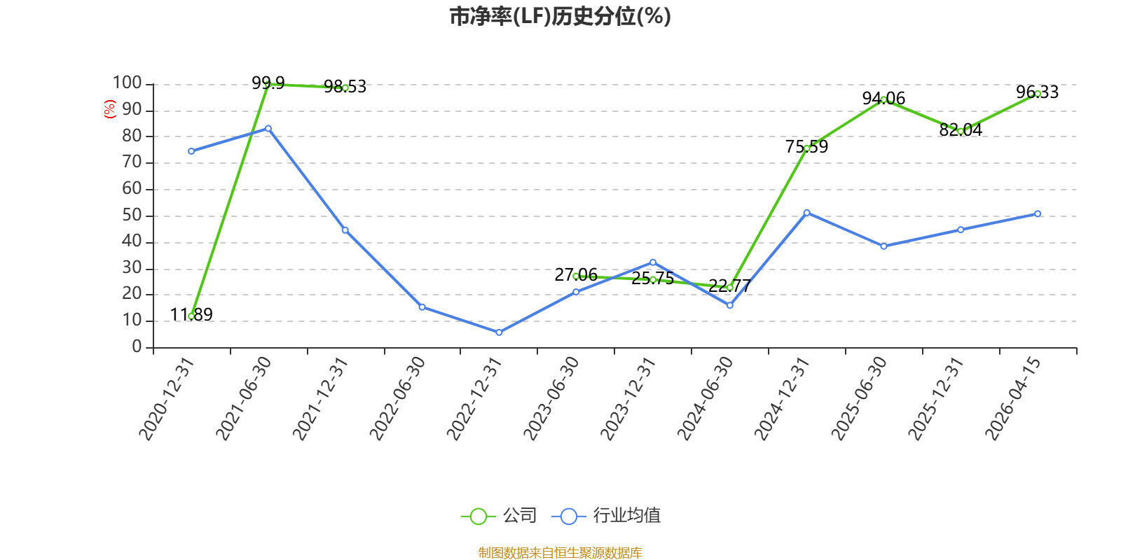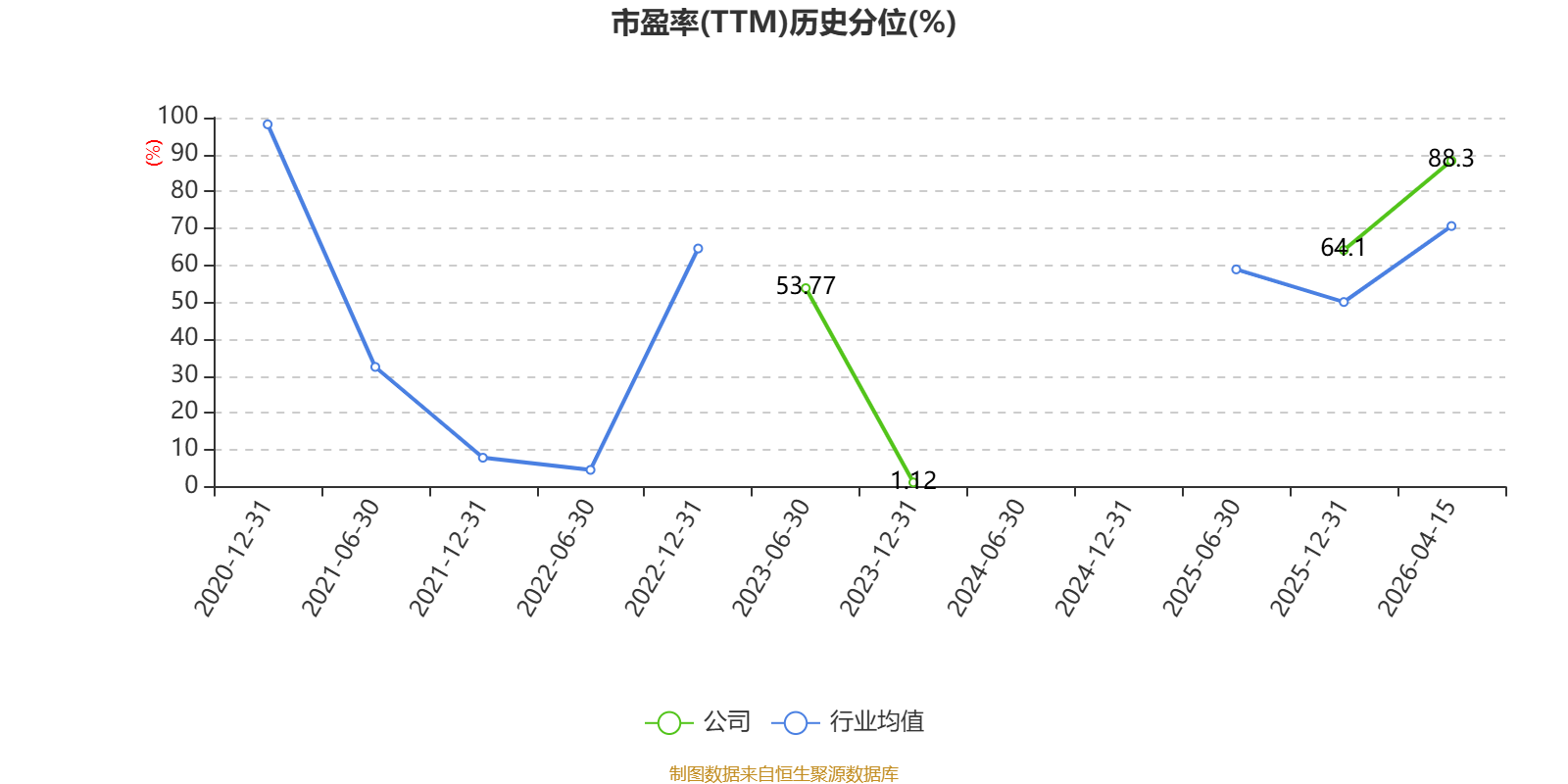 市盈率、市净率为负时,不显示当期分位数,会导致折线图中断。
