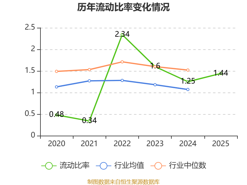 2025年,公司流动比率为1.44,速动比率为1.36。